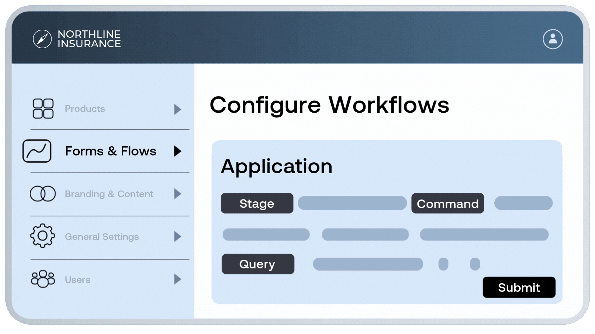 Design personalized journeys for quoting, claims, service, and more using drag-and-drop tools. You control the questions asked, when data is pulled or pushed via API, and how different paths branch based on logic. It’s powerful enough for complex scenarios and simple enough for business users to manage.